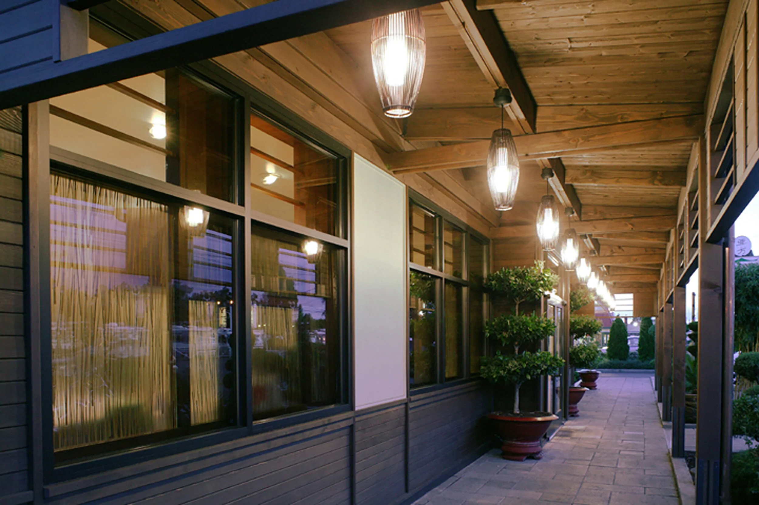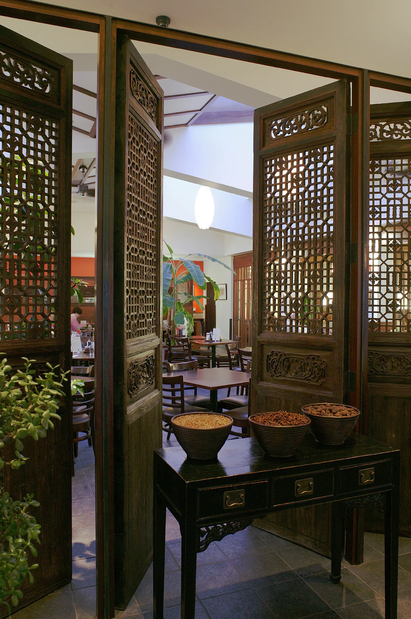 Architecturally, this rustic-modern spirit is reinforced by daylighting and by the use of wooden grillwork and color. The spatial layout is essentially a courtyard scheme with the "garden" area of open tables lit by large skylights. Intimate banquette seating surrounds the courtyard; wood-grille partitions provide simultaneous privacy and openness. The design endeavors to capture the mood of a previous yet timeless era, combining both Western and Eastern influences in a way that's appropriate for the modern Pacific Northwest.